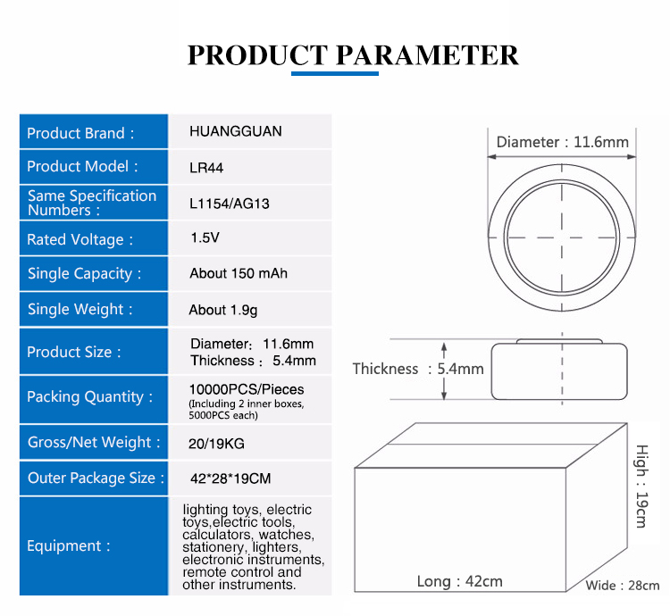 AG Button Cell Specification Table