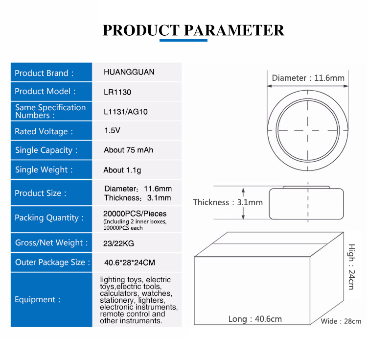 AG Button Cell Specification Table